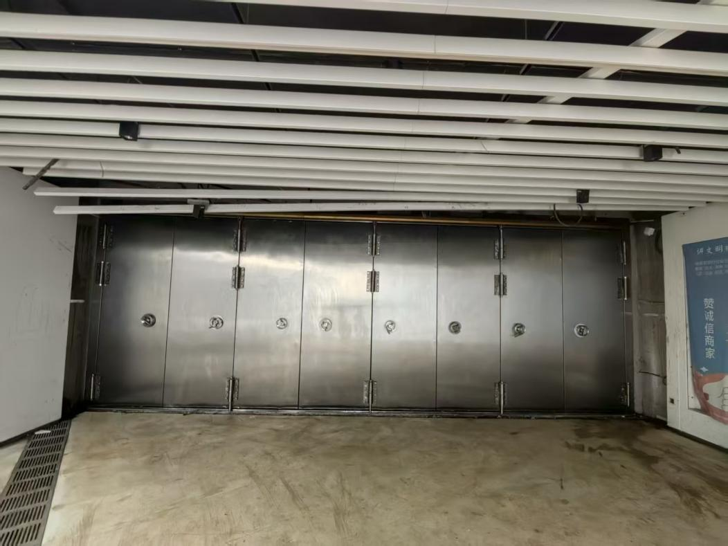 防淹门是防止水流涌入车站或隧道的密封门。一般由门体,启闭装置、机械锁定装置和就地控制系统组成,在进出水域两端适当位置设置。适用于地下建筑的出入口、地铁站的出入口、地下车行通道的出入口、地下重要设备用房的通风或采光洞口及地面低洼建筑的防洪等。