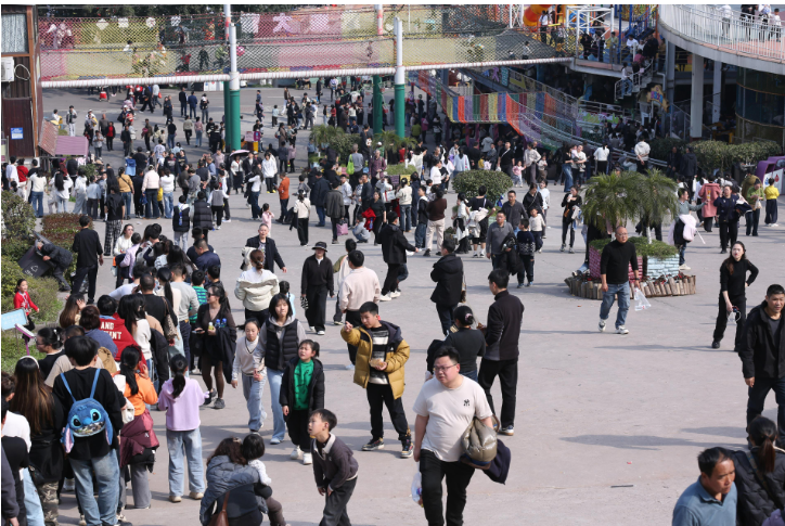 节日期间,景区紧扣马年生肖与巴渝年俗,推出策马巡游、舞龙舞狮、财神送福、比武招亲、打糍粑、拓福字、猜灯谜、红酒长桌宴、篝火晚会等沉浸式互动活动,打破传统观光模式,让游客从“围观者”变身“参与者”。新春集市汇聚非遗手作、乡村文创、涪陵农特产品,就业帮扶车间年货集市产销两旺,以文旅消费助力乡村振兴。