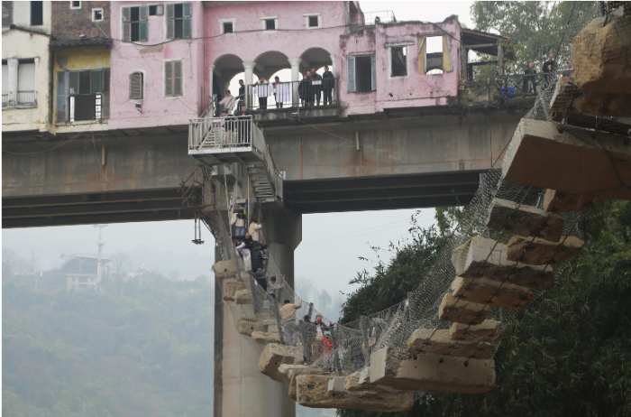 游客打卡巨石索桥