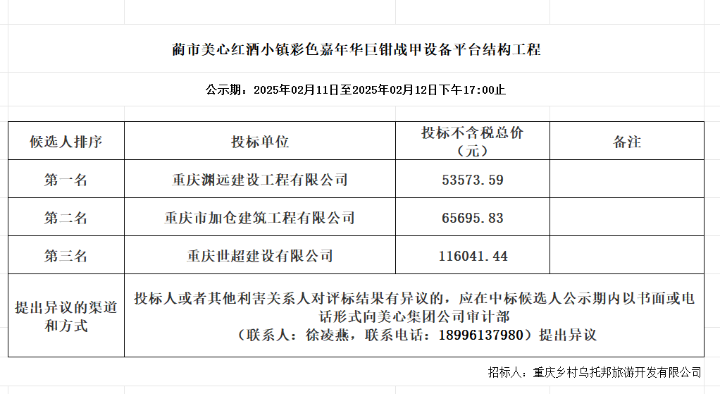 蔺市美心红酒小镇彩色嘉年华巨钳战甲设备平台结构工程 中标公示