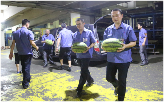 各生产线负责人也表示,将积极传达公司高层领导的关怀,落实好西瓜的分配,切实做好防暑降温工作。