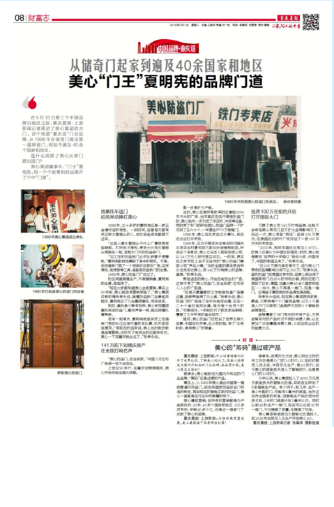 2019年5月10日,即将迎来第三个“中国品牌日”。美心作为重庆知名企业及门窗行业30年老品牌,与长安汽车等接受了重庆晨报·上游新闻联合重庆市发改委,共同推出的“中国品牌·重庆造”专题系列报道。