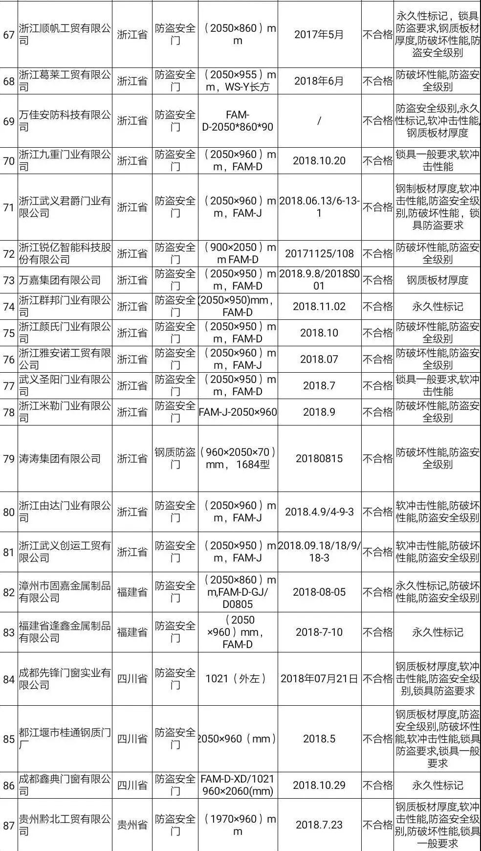 防盗门不合格名单.来自市场监管总局网站