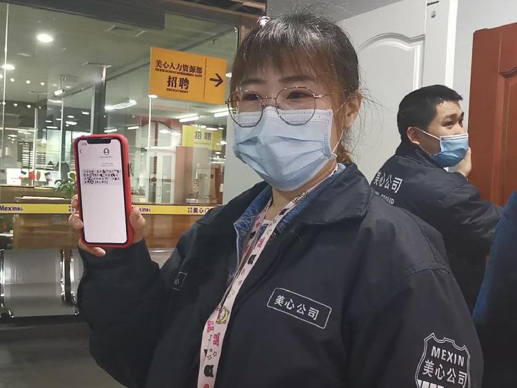 与此同时,在美心已经工作八年的胡俊也收到了工资提示。胡俊说:“非常感谢公司的全额工资发放,因为近期无法工作,家里面的其他人员都没有正常收入,工资的发放确保了家庭人员的基本生活需求,非常感谢公司在特殊时期的关心与不离不弃,这是一个非常有责任心与使命感的企业,恢复正常工作后,一定更加投入到工作之中,来回报公司的支持。”据介绍,胡俊是湖北黄冈武穴市人,市内乡村道路昨天才解封,但还不能上高速,出省通道也是关闭的,暂时还不能复工。