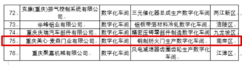 重庆市数字化车间和智能工厂名单出炉,美心门生产车间被认定为“2020年重