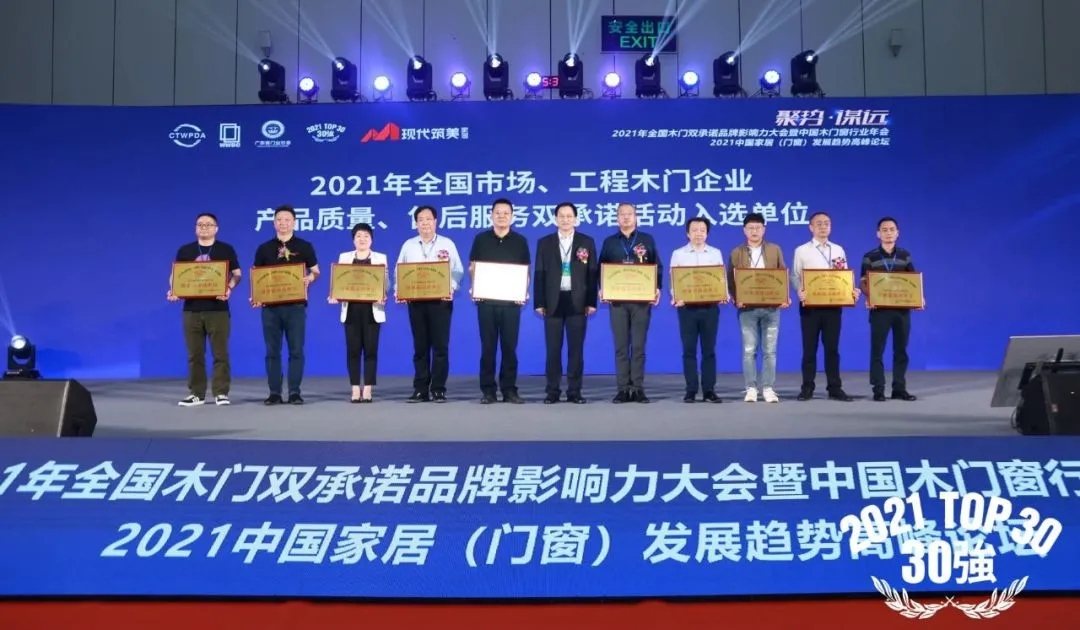 2021年3月17日-18日,以“聚势·谋远”为主题的2021年全国木门双承诺品牌影响力大会暨中国木门窗行业年会在广东省佛山市圆满召开。作为中国木门行业重要的国家级品牌活动,以匠人匠心打造民族品牌,这条坚持了17年的精进之路,催生梦想,缔造卓越,践行社会责任,在这面共同的旗帜之下,聚集了许多志同道合者,同时也涌现了一批综合实力雄厚,发展势头强劲的行业中坚。