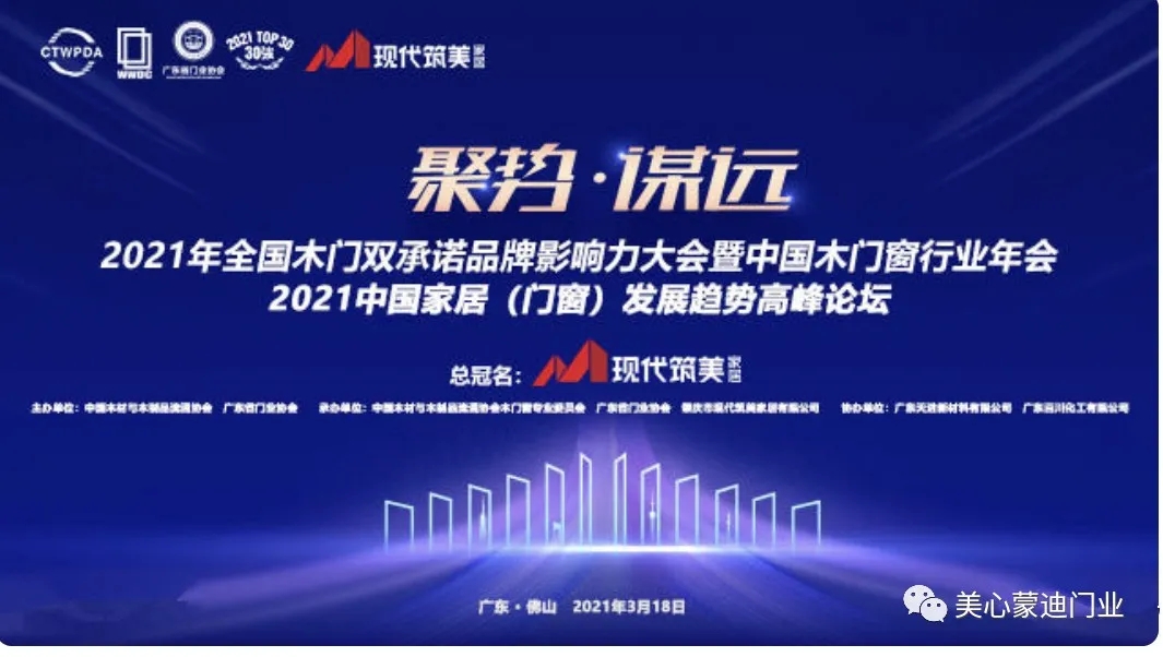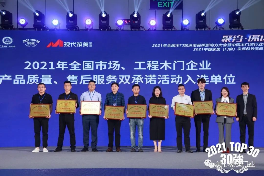 3月18日,2021年全国木门双承诺品牌影响力大会暨中国木门窗行业年会在广东佛山隆重举行,美心蒙迪门业再次荣获“2021年全国市场、工程木门企业产品质量、售后服务双承诺活动单位”的光荣称号!