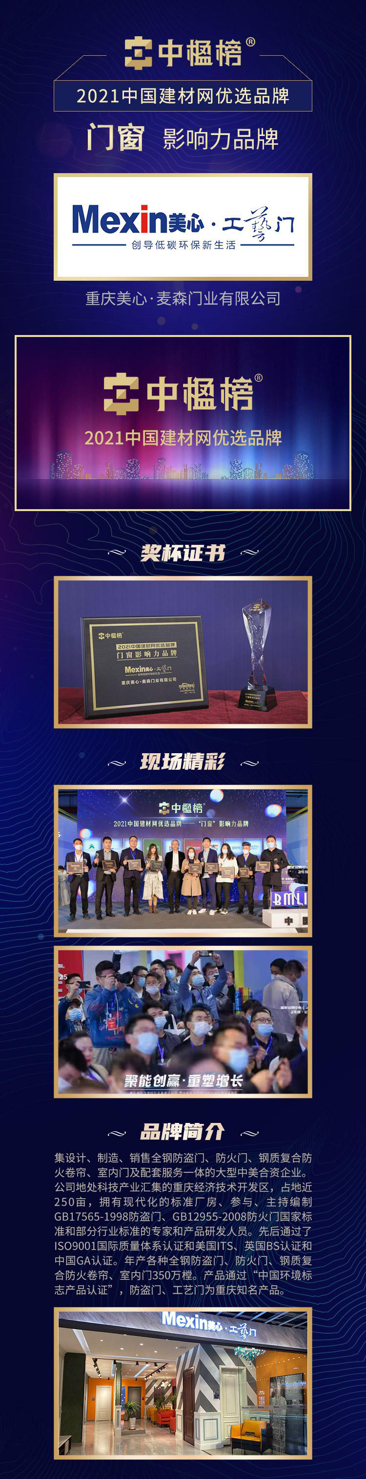 美心工艺门2021年上榜【中楹榜】 荣获“门窗影响力品牌”大奖!