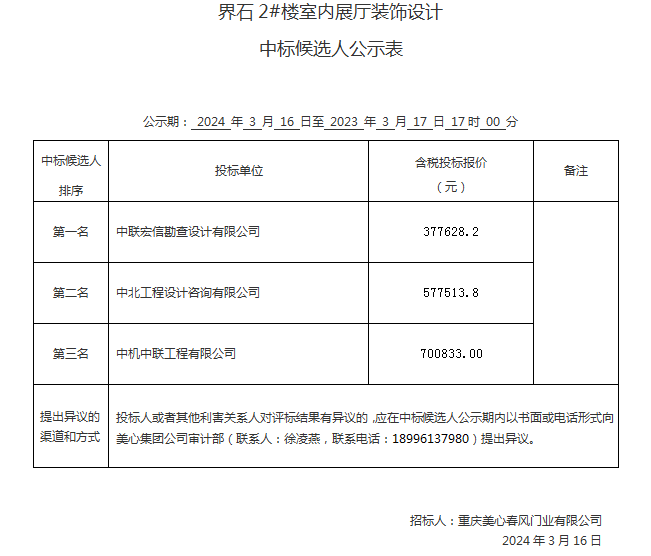 界石2#楼室内展厅装饰设计 中标候选人公示